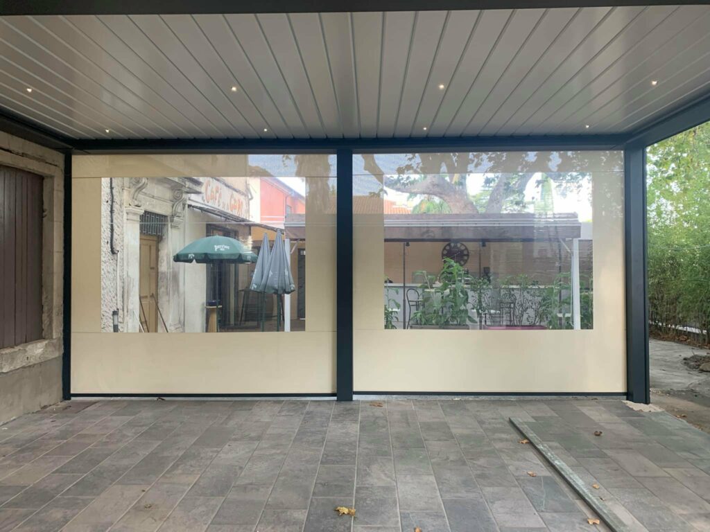Lorsqu’il est installé seul sur une pergola ou un préau, il permet de se protéger efficacement contre les courants d’air et ainsi de prolonger les longues soirées d’été.